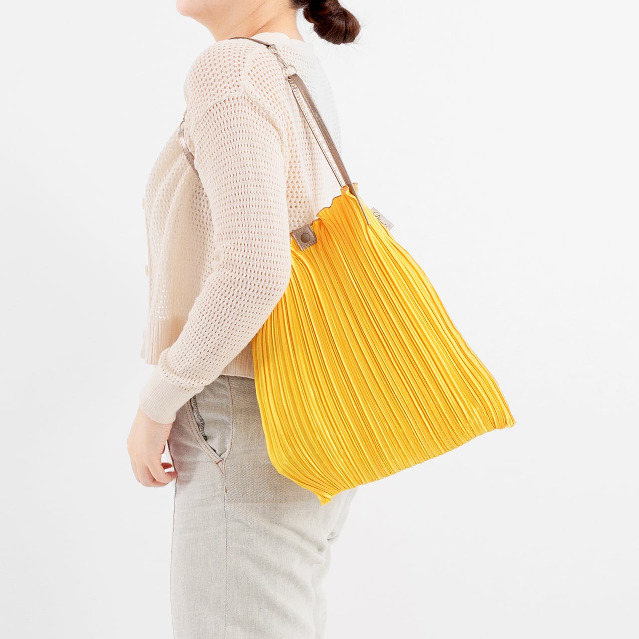 エレガントな光沢と艶のあるプリーツバッグ! プリーツはサテン生地を使用し、撥水加工済で汚れにくく普段使いにおすすめです。