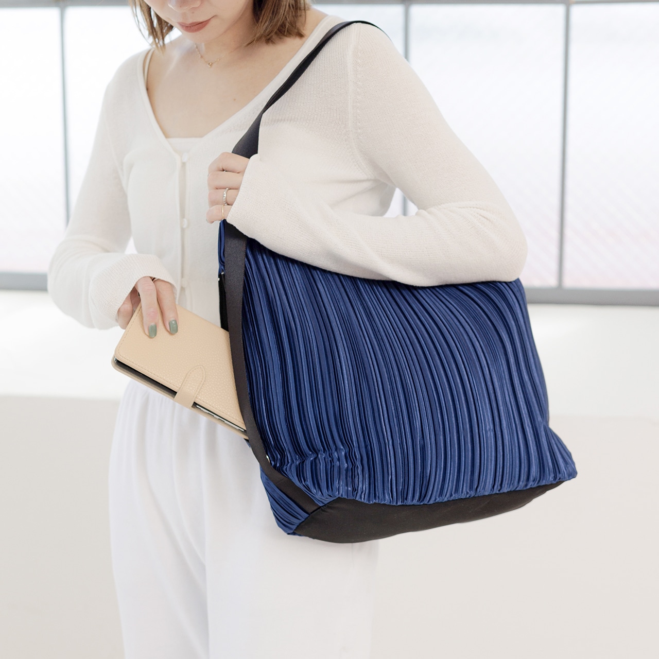 マチがある上に特殊なプリーツ素材がとてもやわらかいため、たっぷり入るのが嬉しいポイント。さらに非常に軽いので、旅行中の移動も負担になりません。