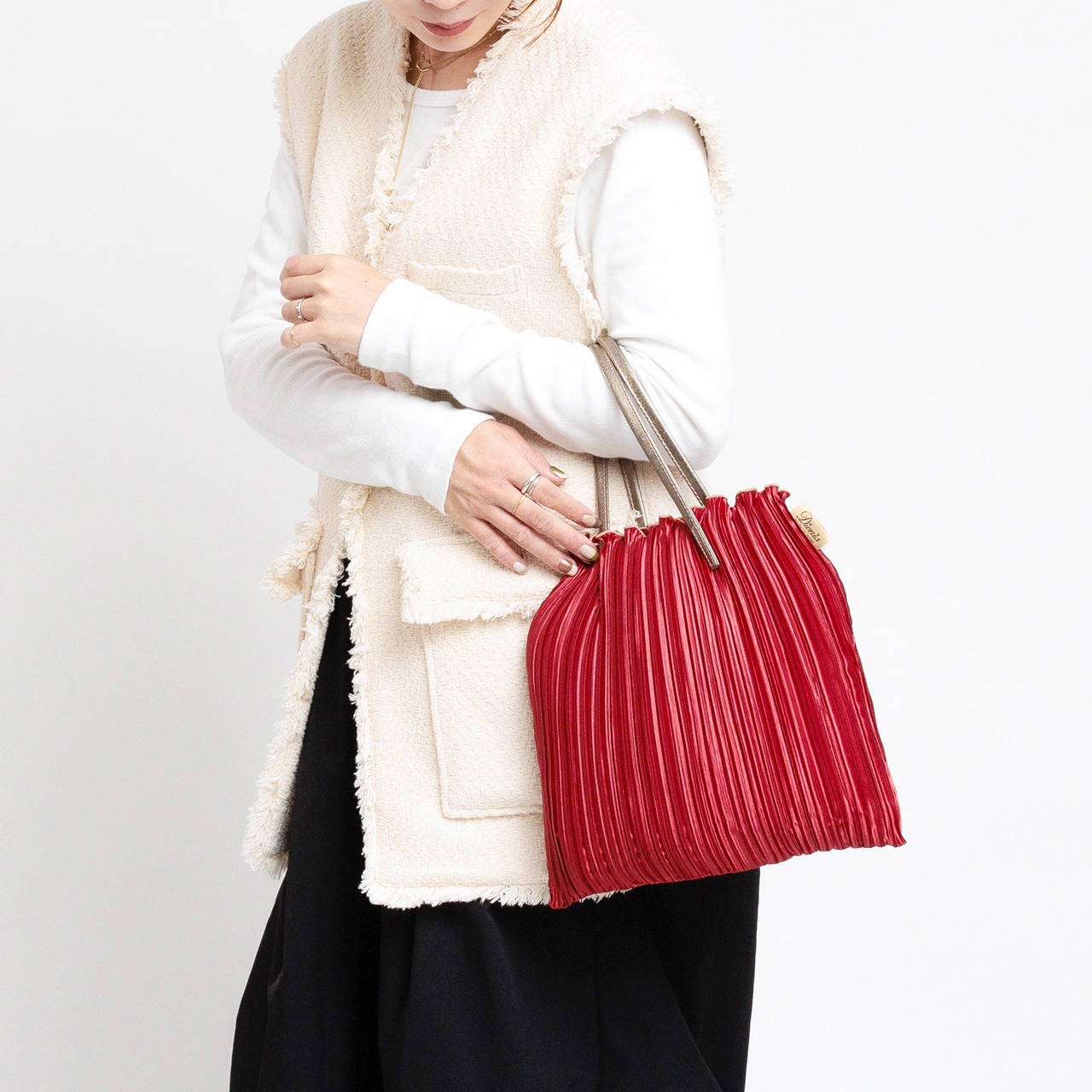 ディオニスらしい上品さがあふれるプリーツは、きれいめなワンピースやジャケットスタイルにぴったり。