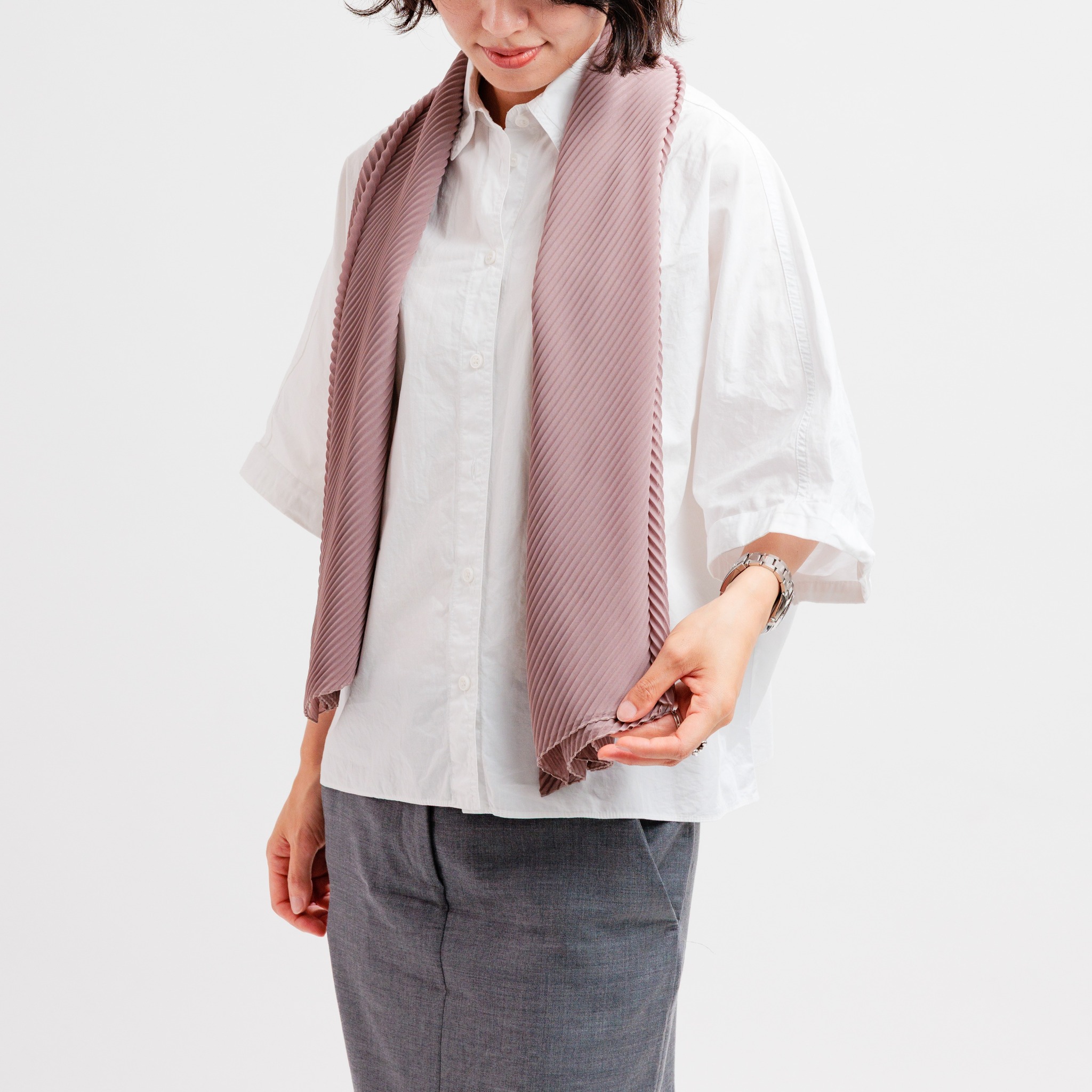こちらのモカのカラーは落ち着いたベージュピンクで大人も取り入れやすく、ストール初心者さんにもおすすめのカラー。