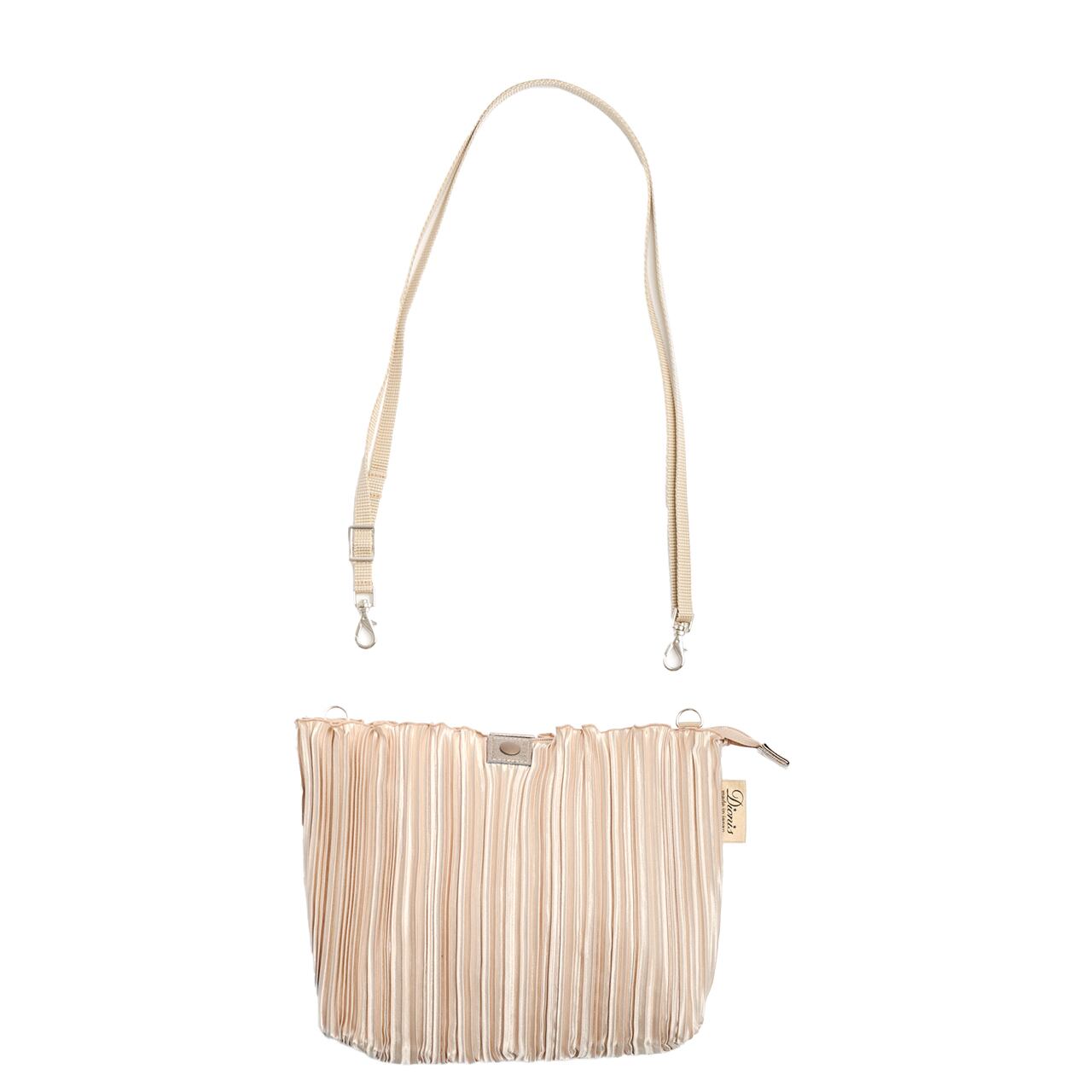 プリーツのポケットがついた、長財布も入るショルダーバッグです。