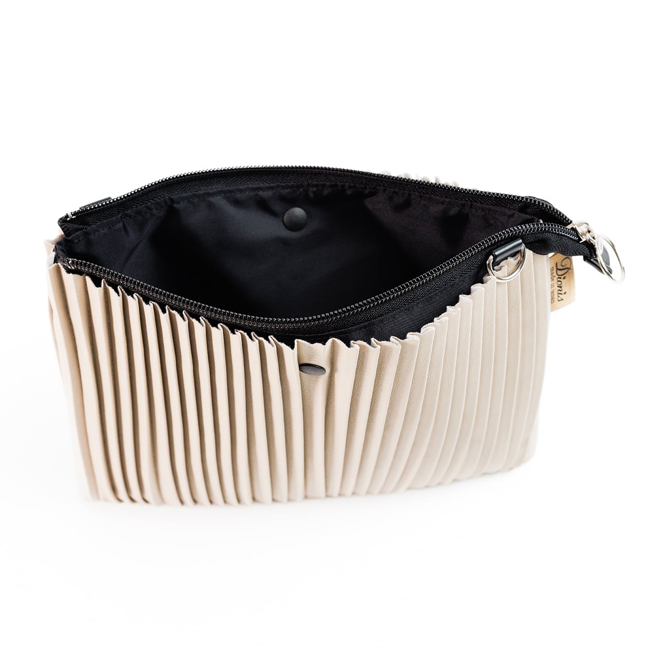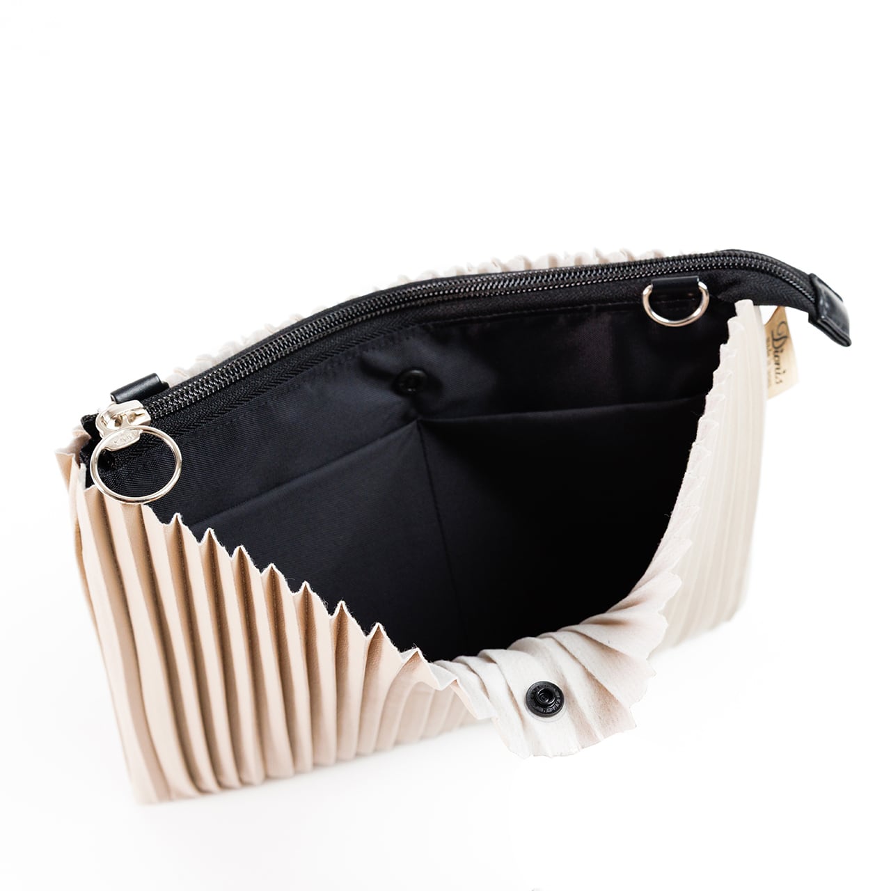 とても軽くてストレートプリーツがシャープな印象のプリーツショルダーバッグ。