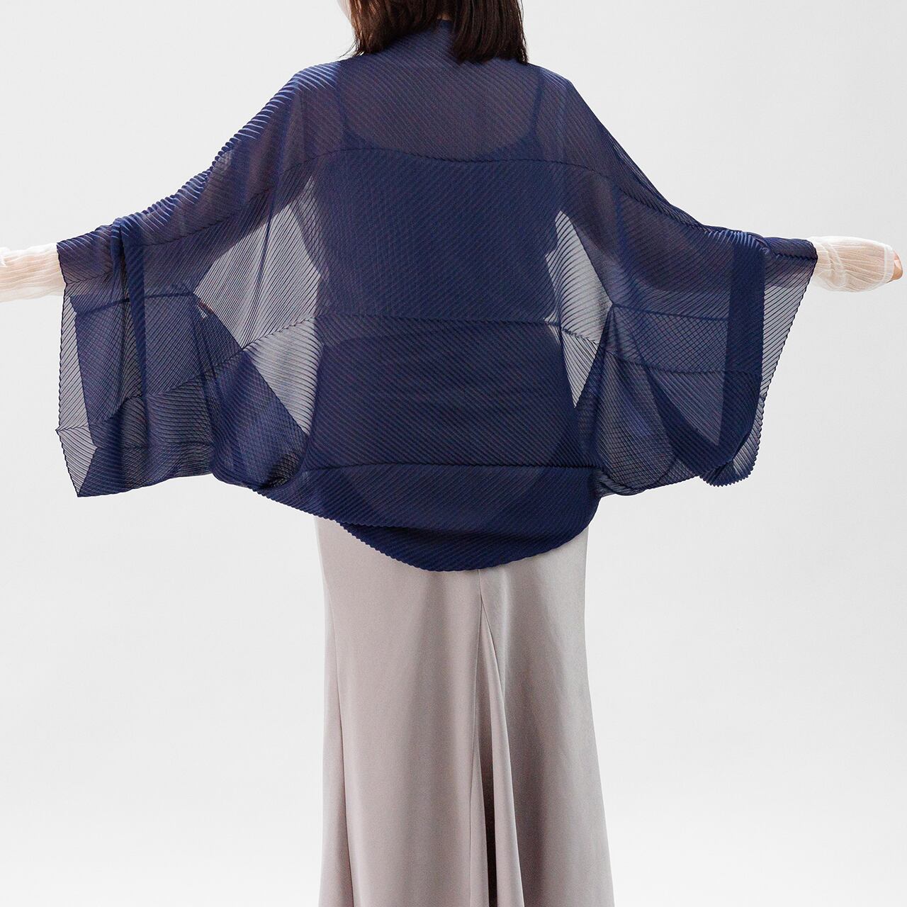 Wearable Stole015は、袖を通すことで羽織ることができるストールです。透け感のあるシフォン素材は、春夏には冷房対策や日よけにぴったり!秋冬にはコーディネートの差し色として活躍します。季節を問わず大活躍するアイテムです!D-A-016よりも短めのサイズとなっています。