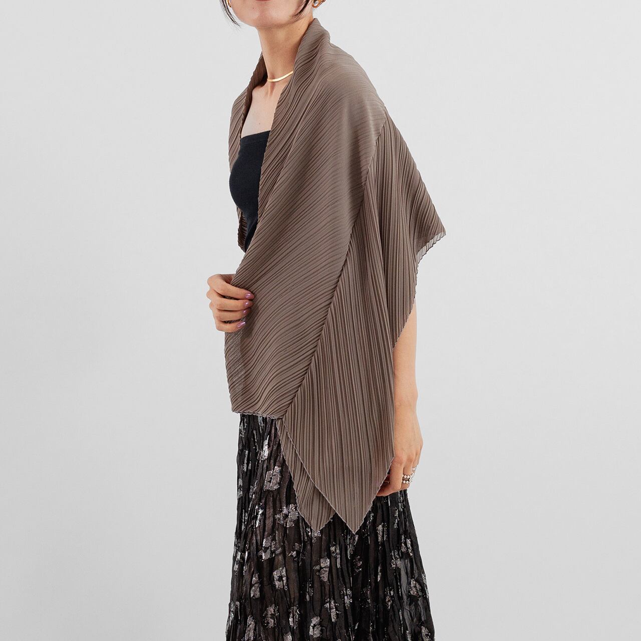 多彩なカラー展開により、シーンや気分に合わせたコーディネートを楽しめます。ランダムに施されたプリーツデザインは、リズム感のある表情を生み出し、どの角度から見ても魅力的に見える工夫がされています。