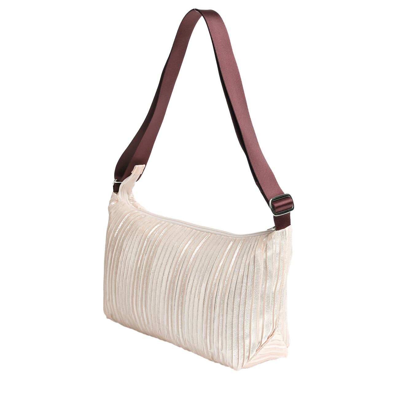このプリーツショルダーバッグは、メタリックな光沢と華やかなラメが魅力のアイテムです。撥水加工が施されているため、突然の雨でも安心してお使いいただけます。ファスナー仕様で安心感も抜群で、日常使いやお出かけに最適です!