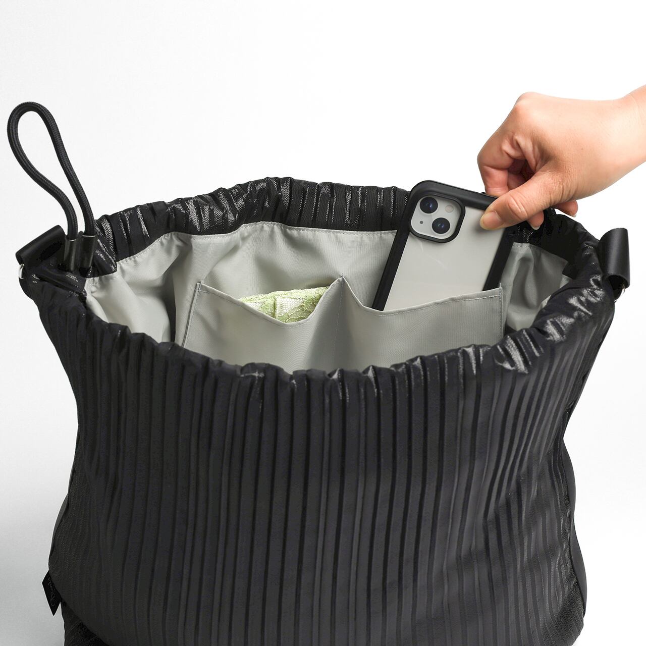 口元が大きく開くので、荷物を入れやすく、内ポケットが2つあり容量もたっぷりで、ペットボトルやスマートフォンなどの小物から衣類の収納まで幅広くお使い頂けます。ショルダーは長さが調整可能ですので、短くして肩掛け、長くして斜め掛けにもできます。