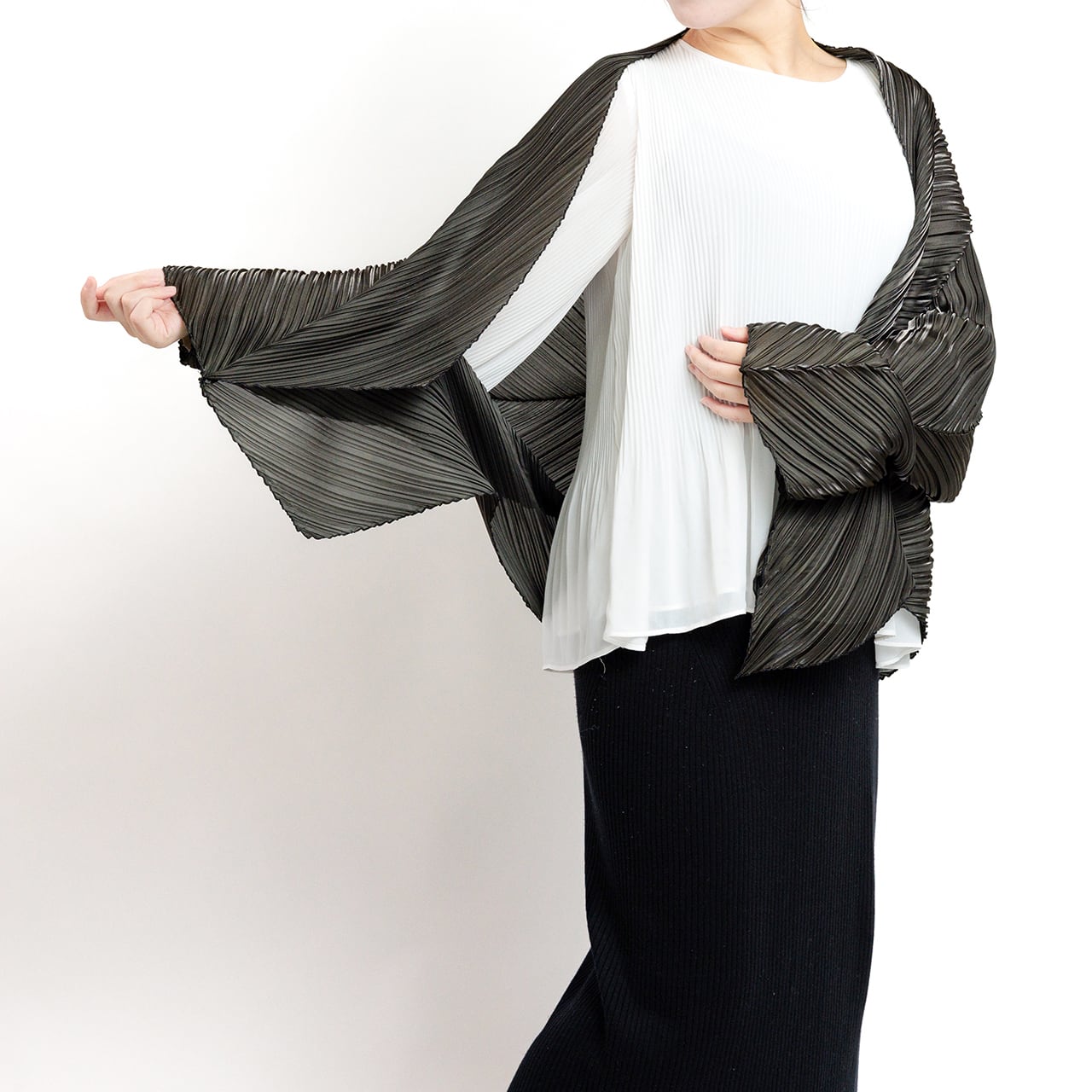 プリーツデザインはランダムに施されており、ひとつひとつが個性的な印象を与えます。